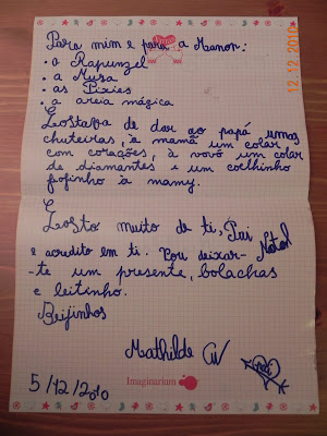 ps – Por favor não te esqueças das bolachas e do leite que me sabem sempre muito bem! Obrigado!"