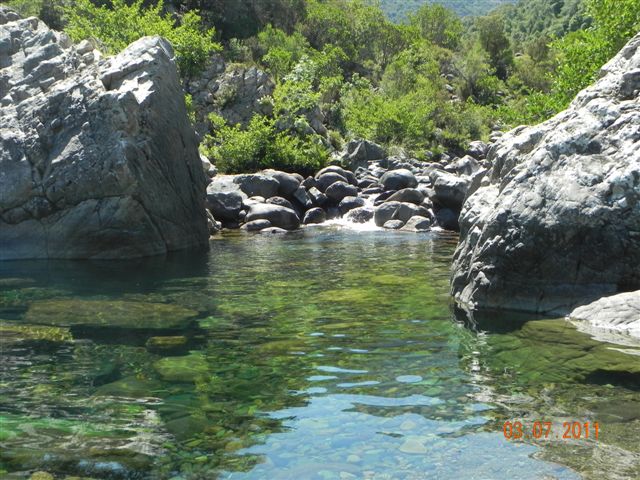 Um dos lugares que nos encantou foi Galeria onde podemos mergulhar no Fango, um rio doce a 25 graus cheio de laguinhos entre pedras multicores.